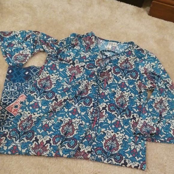 Ladies tie v-neck dress Bell 3/4 sleeves Light and comfy Pet and smoke free home Length is 36" Pit is 15.5"