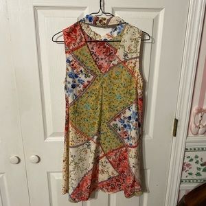 Flower pattern dress. Buttons behind the neck. Low V back but able to wear bra with dress. Excellent condition