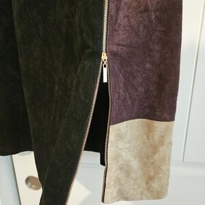 black brown w a beautiful gold zipper to spice it up a bit. suede makes it very elegant. runs small