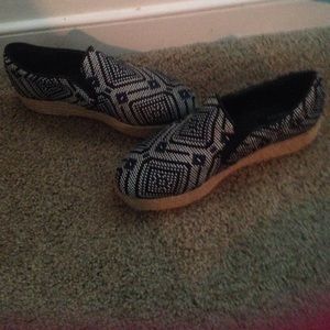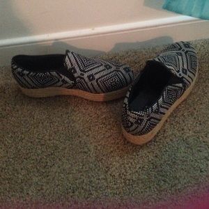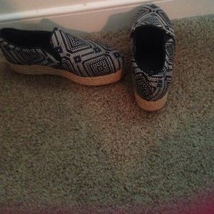 Tried on once! NEVER WORN F21 espadrilles cute blue, black. And white pattern with tan bottoms nice for your high waisted shorts and little tee this summer ✨🌞