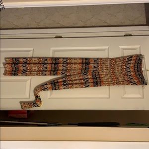 Missing belt attachment, belt loop holes so different belt can be used. Elastic band at mid torso level