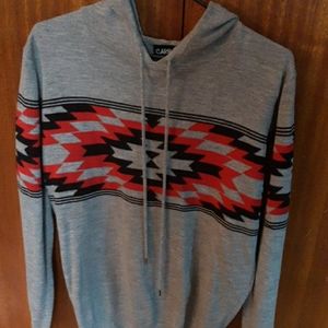 Pullover sweater hooded with longer sleeves and cozy hardly worn