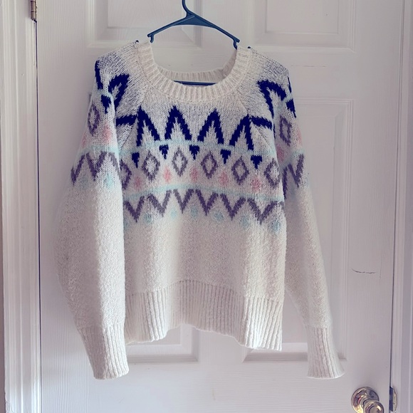 Target brand ‘a new day Size XL White cozy sweater with blues, pinks, and grey pattern