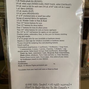 Just in time for Easter!!. Pattern for a really cute “honey bunny”. Pattern and a list of supplies that would be needed to create this 36” (length of ears not included) bunny with 4 different coats.