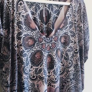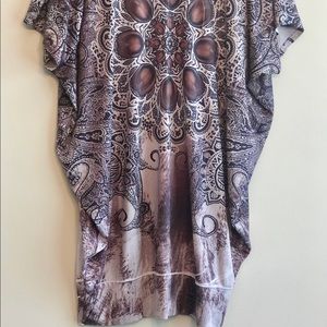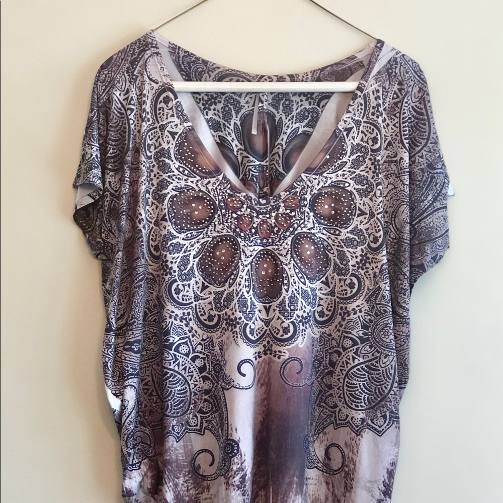 Brown, Tan, and Black Pattern- Design Blouse with form-fitted bottom and Sequins.