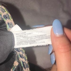 Blue and tan patterned backpack. Lightly used and in great condition. The backpack has 2 front pockets, a top pocket, and a zipper pocket on the inside.