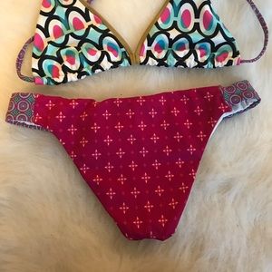 Re-poshing. Very cute bikini, no padding. Cheeky bottoms. Can fit up to D cup, small bottoms