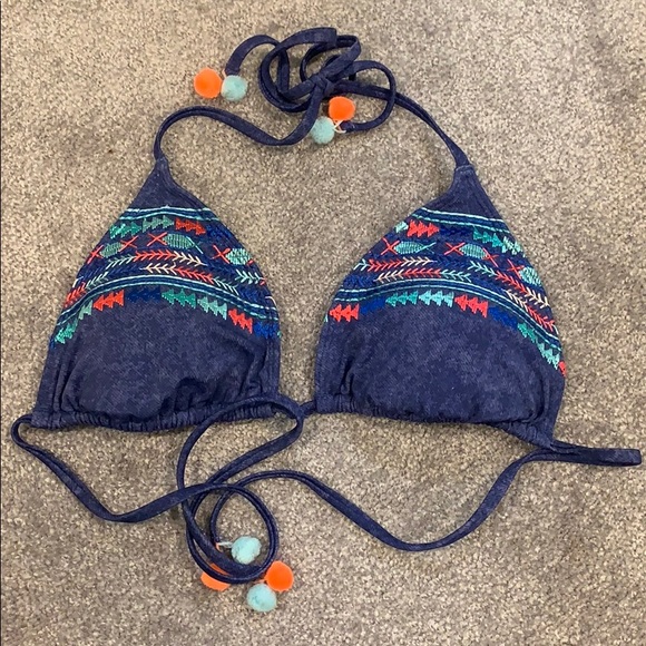 Aerie bikini top with pompoms at the ends. Ties at neck and back