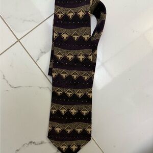 Elevate your style with this patterned black and gold men's tie. Perfect for any formal occasion.
