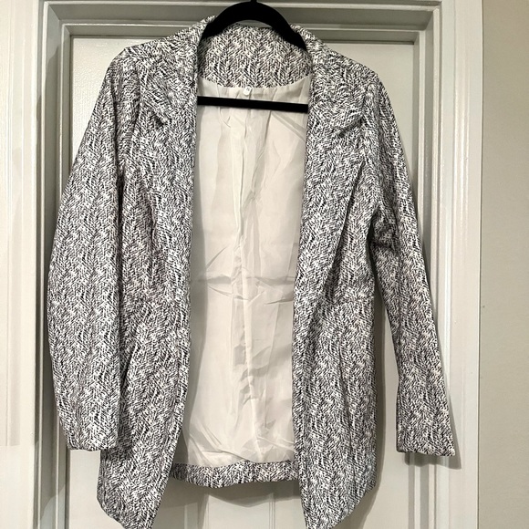 Very good condition - like new. Black and white patterned, long sleeve blazer. Pockets on both sides. Size small