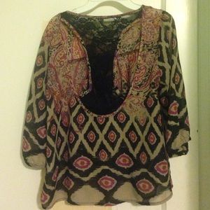 Printed blouse with black lace back