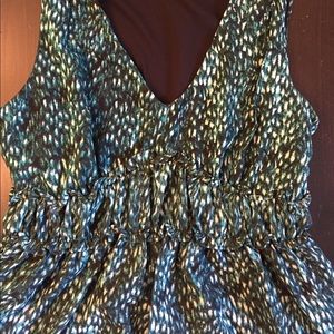Turquoise, white and black patterned flowy blouse. Never worn. 100% polyester. Forever 21 size Small.