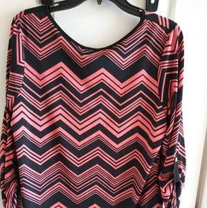 Navy blue with corral color. Excellent pre owned condition Measurements laying flat Length 25" Bust 20 Waist 20 Stretchy material