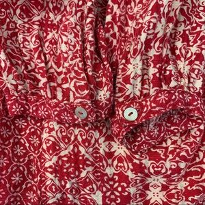 Red printed blouse with 3/4 length sleeves. Good condition other than a small hole near the seam on the shoulder. Offers welcome.