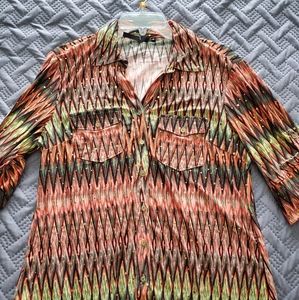 Chevron patterned Blouse with glittery details along the front and back of the blouse. Design detail sleeves and buttons along the front. Size Medium