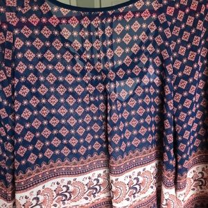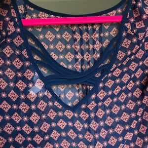 Patterned Blouse. Kinda see through. Crosses on back. Says small but one size.