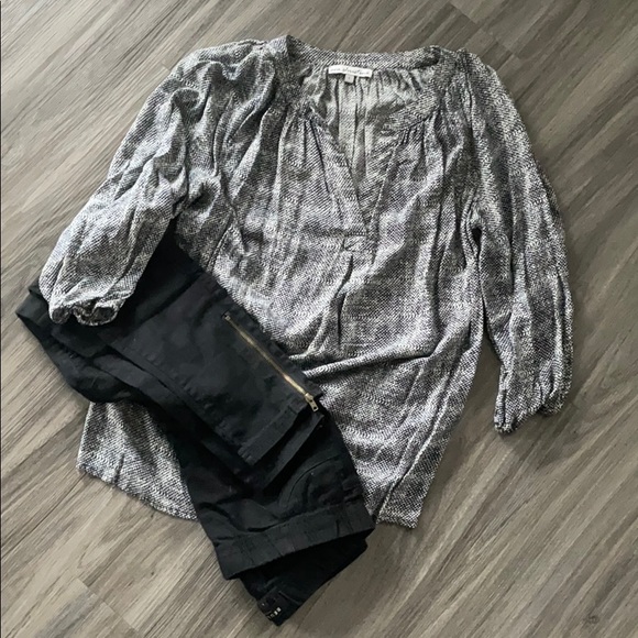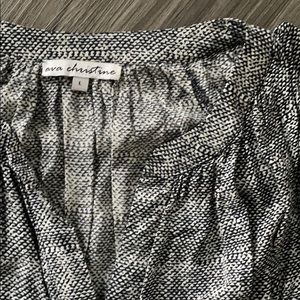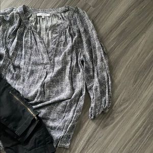 Thin and flowy blouse great with jeans or nicer pants. The pattern is black with blue hints - hard to describe so I included a close up picture as well.