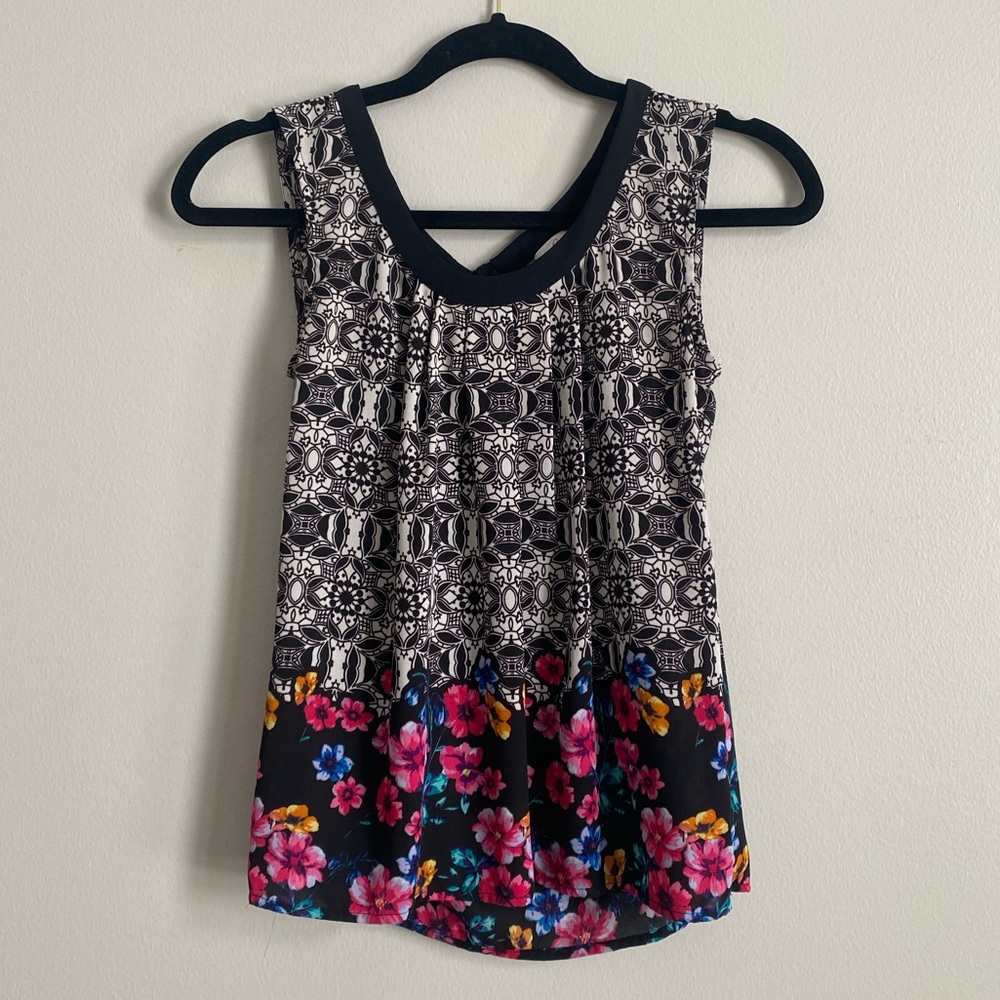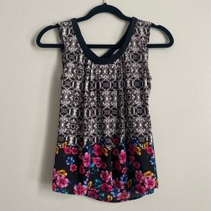 Flowy patterned blouse with tie up keyhole back in perfect condition