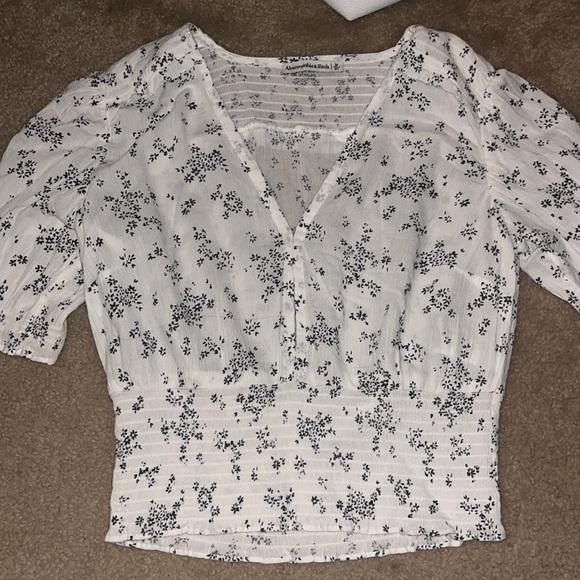 This blouse is from Abercrombie & Fitch and has only been worn twice. It is white with a black floral pattern.