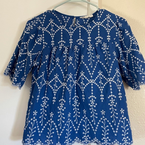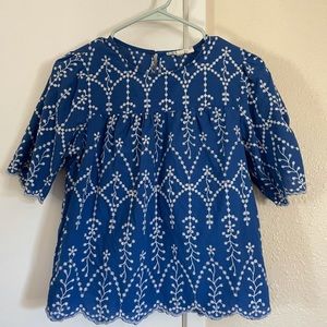 Patterned Blue Top - Medium - Scalloped Bottom