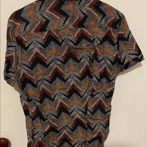 Used but in good condition. Mens button up shirt with cool pattern. Size small