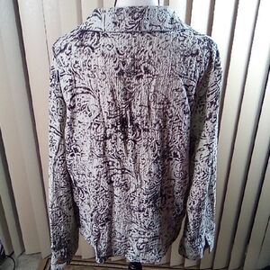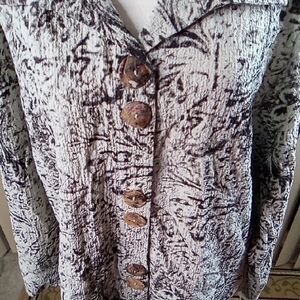 Stylish Long sleeve blouse with a unique pattern. Features large buttons and a classic collar. Perfect for adding flair to any outfit.