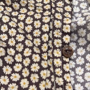 Stylish button-up shirt with a unique pattern. Features a blend of black and cream colors.
