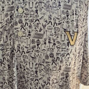 Stylish patterned button-up shirt featuring a unique design and logo detail. Perfect for casual wear. 0106