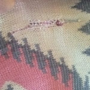 I’ve only worn this cardigan one time. I wish I could wear it cause I love it and it’s really warm. I got it as a gift for Christmas a couple years ago and the arms have always just been tight on me. However, I think someone could wear it and make it really cute! The last picture shows a splitting on the seams behind the collar area, but I think it could be fixed. Also, it is where the collar folds so you don’t even see it. Thanks for looking!