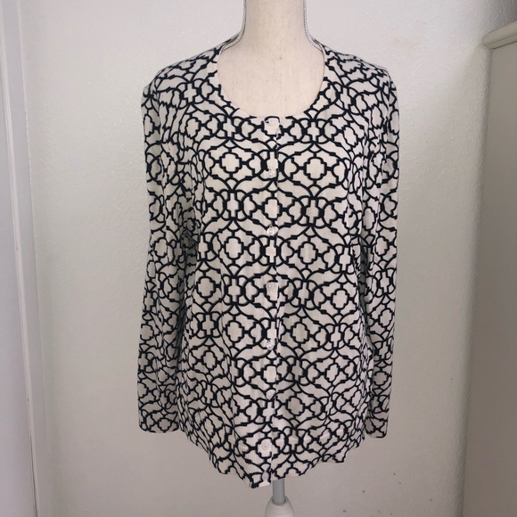 Black and white patterned, button down, long sleeved cardigan. 100% Cotton. Never worn. NWT.