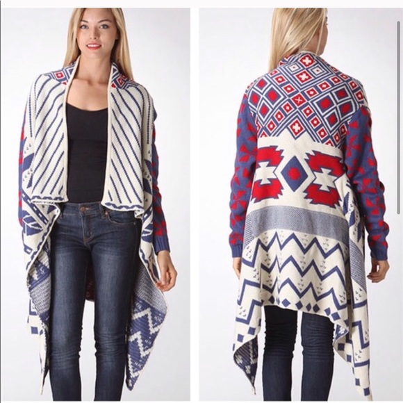 Patterned cardigan. I love this cardigan so much!!! I wish I lived in a colder climate so I could wear it. Only worn about 2-43 times. Tag says medium/large.