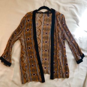 Patterned cardigan. Cute way to spice ip your outfit. Size large but can really fit anyone- it will just be a little bit looser on a smaller frame