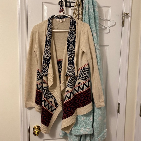 This is a knitted cardigan with a pattern. It is in new condition & very warm. The size is XS but can fit a person who wears S or even M. I will ship to anywhere in the US!