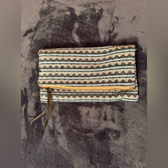 Stylish aztec patterned fold over clutch bag with a unique design. Can be worn as clutch and comes with a strap to turn into a crossbody. Never worn, perfect condition. Pet free, smoke free home.