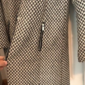 Long line black and cream square checkered longline jacket.