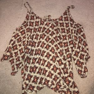Patterned cold-should blouse, flowy and comfy, half sleeves