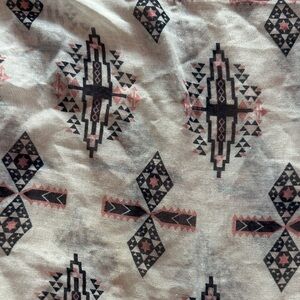 Elevate your style with this elegant patterned cream scarf. Perfect for any occasion. Pattern colors are navy blue and pink.