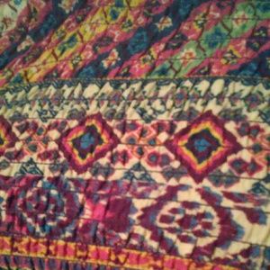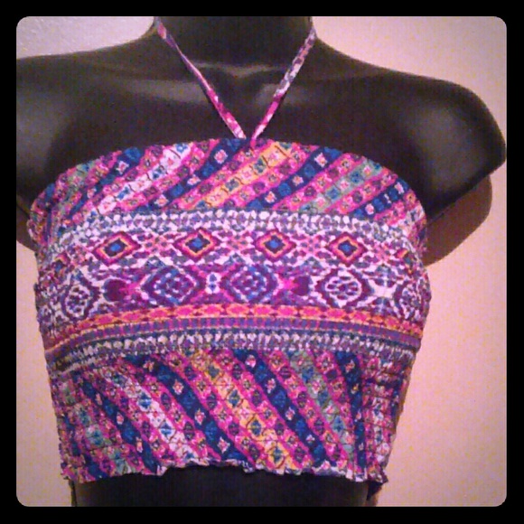 Top is stretchy with neck tassel ties. Shows most of the stomach. Looks cute with high waisted shorts!