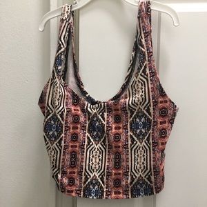 Patterned cropped tank top with red/white/blue tie dye design. Perfect condition.