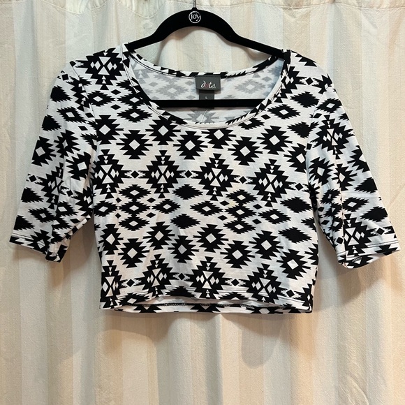 Black and white tribal pattern crop top. Above the elbow sleeves. 95% cotton, 5% spandex. Brand new