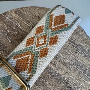 Enhance your bag with this stylish patterned crossbody strap. Featuring a blend of cream, orange, and green, it adds a unique touch to any accessory.