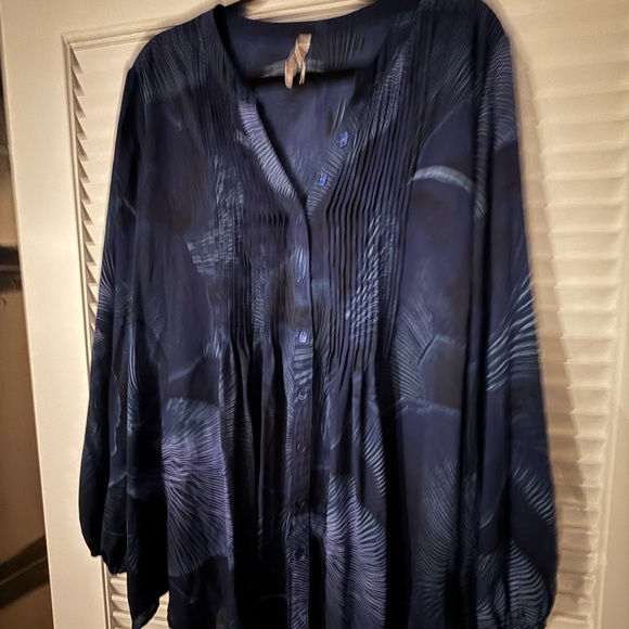 Elegant deep blue top by Seven for All Mankind X Melissa McCarthy. Features a classic design.