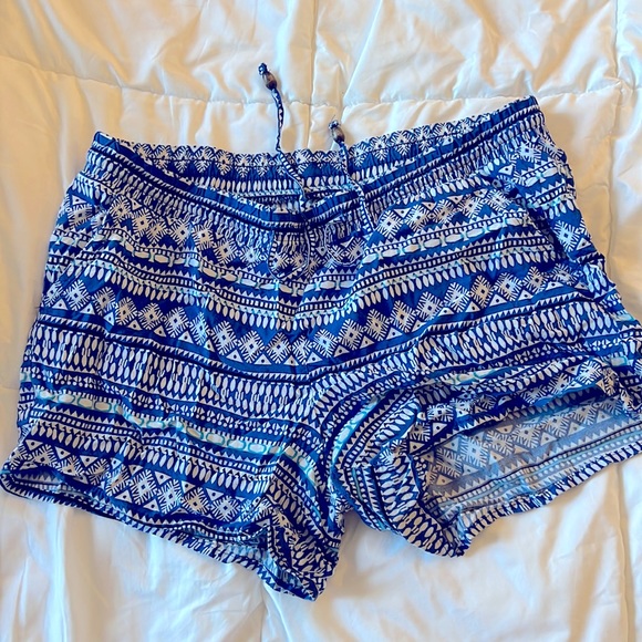 Lightweight, cute, and comfy! Has two pockets and a drawstring. ~4” inseam