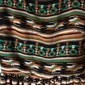 Green, burnt orange, black, and white patterned Dress.