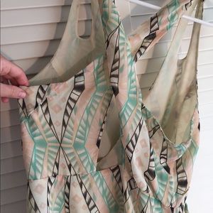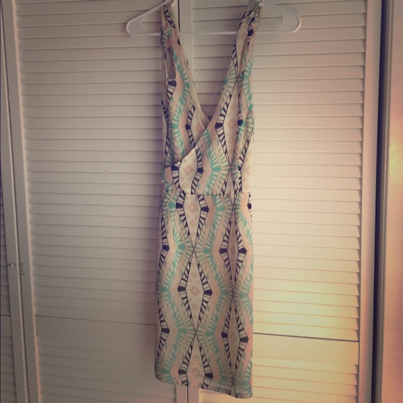 Forever 21 dress perfect for a cocktail party or wedding. I love the pattern, and the fabric criss-crossing in the back. The best part is the pockets! Length: mid-thigh. Colors: cream, peach, black, aqua