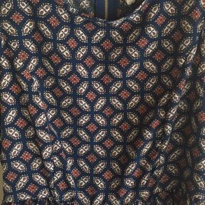 Navy blue patterned dress by One Clothing. Size Small. It is very lightweight and comfortable, has a back zipper and is fitted under the bust. Length is 33" and under bust measures 13". It ruffles slightly at the bottom. I got many compliments with this dress! It is in excellent condition and has no rips or stains. Bundle with other items in my closet and save, offers always welcome!