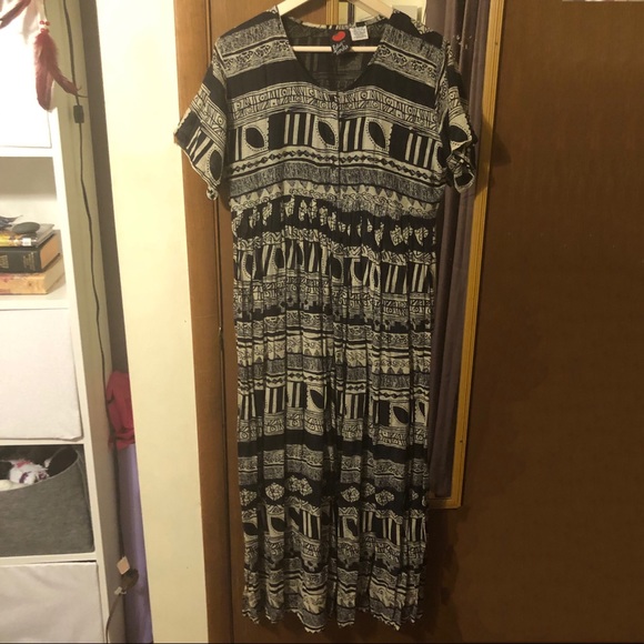 Vintage black and white patterned maxi dress. A little see through. Very flowy. Button up top