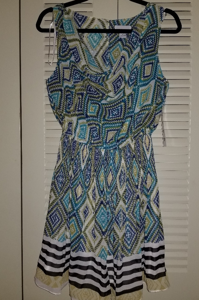 Fun sheer patterned dress with scoop neckline and elastic waistband. Fully lined. Size small. Length 35", chest 18". NWT.