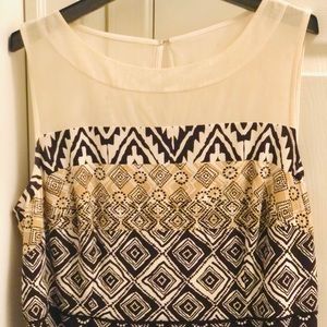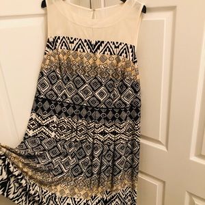 White, Tan, Black, Cream patterned dress
