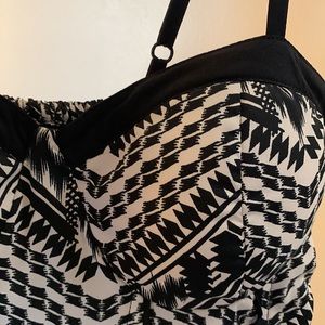 This dress is size XS but I am a small & it fits me because it has elastic, stretchy material on the back so it can form fit to you. It comes down to just above my knees. Accepting offers!